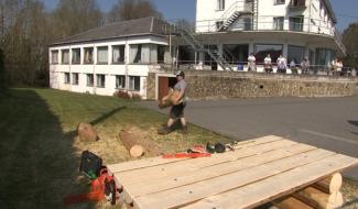 Image Coronavirus 09/04/2020 Ferrières : Olivier fait du mobilier en bois devant les résidents du home