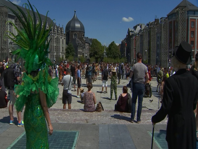 La place Saint Lambert a été le théâtre d'un événement singulier ce midi, sous forme d'une manifestation statique et silencieuse des artistes, techniciens et travailleurs du monde de la culture. Cette initiative était déclinée dans 10 villes belges pour réclamer plus de considération et de soutien de la part des pouvoirs publics.
