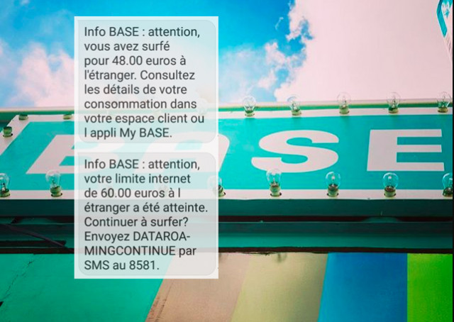De nombreux utilisateurs ont reçu deux SMS dont le dernier indique qu'ils ont consommé tout leur forfait suite à un surf à l'étranger d'un montant supérieur à 60 EUR.