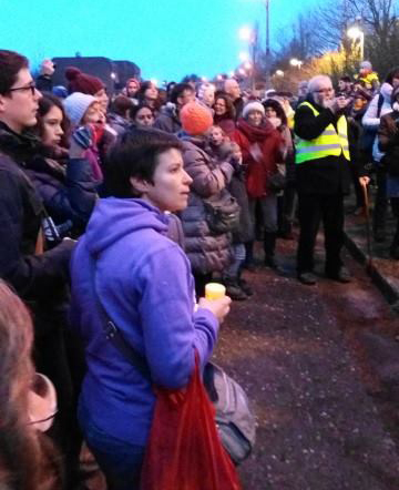 Dans un froid de canard et balayés par le vent, les manifestants ont scandé: "On en a marre", relayés par les réfugiés à l'intérieur du centre. Chaque année, à l'appel du CRACPE (Collectif de Résistance aux Centres pour Etrangers), de nombreux opposants à la politique d'asile du gouvernement se rassemblent le jour du réveillon avec bougies, photophores, lampes de poche et instruments de musique. Cette année, les participants ont formé une chaîne humaine autour du centre. Une délégation composée de représentants d'associations et de parlementaires est entrée dans le centre afin d'apporter un message de solidarité, un soutien chaleureux surtout, et une recharge téléphonique pour chacun. La délégation politique était composée de Frédéric Dardenne, bourgmestre PS de Herstal, Guy Krettels, conseiller communal ECOLO de Liège et de Nadia Maspuco conseillère communale PTB de Herstal. Selon les organisateurs, chaque centre fermé pour étrangers reste une prison qui cache son nom, un lieu conçu pour briser la résistance face à l'expulsion, ce qui implique une violence au quotidien. Celle-ci atteint son paroxysme lors de l'expulsion. Les associations, le CRACPE, la FGTB, la maison de la laïcité de Liège et le MOC (Mouvement ouvrier chrétien) fustigent principalement la politique menée par le secrétaire d'Etat à l'Asile et à la Migration, Théo Francken qui pour séduire son électorat, renforce la criminalisation des étrangers sans titre de séjour.