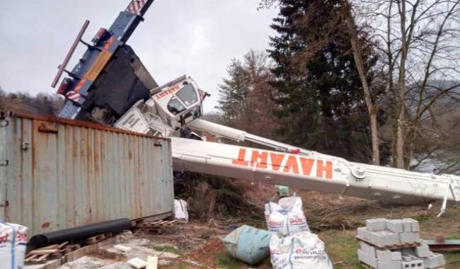 Une immense grue tombe dans l'Ourthe