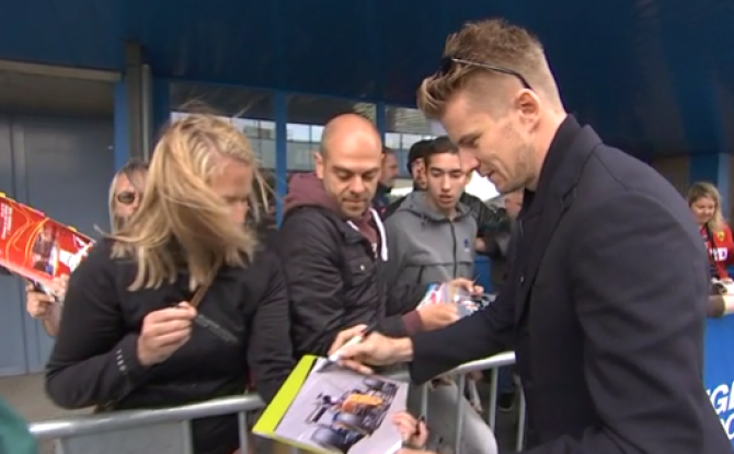 Sebastian Vettel a son comité d'accueil à Liege Airport