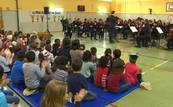 L'orchestre philharmonique joue dans leur école