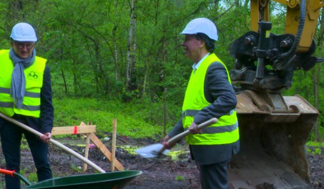 Premier coup de pelle de la nouvelle école Jacques Brel à Herstal