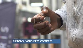 Les stewards comptent les piétons dans le centre-ville.