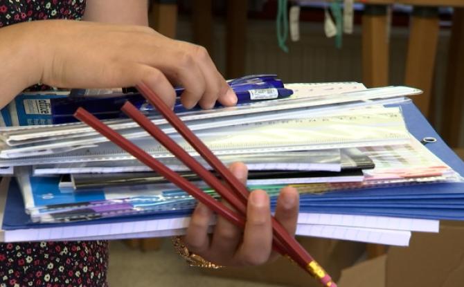 Distribution de fournitures scolaires par l'ASBL "Vaincre la Pauvreté"