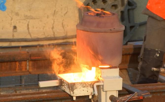 Tram de Liège : la soudure des rails au pont Atlas