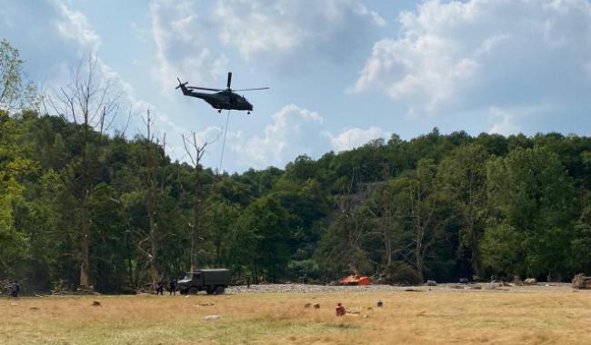 Plus de 90 véhicules doivent être hélitreuillés en Province de Liège